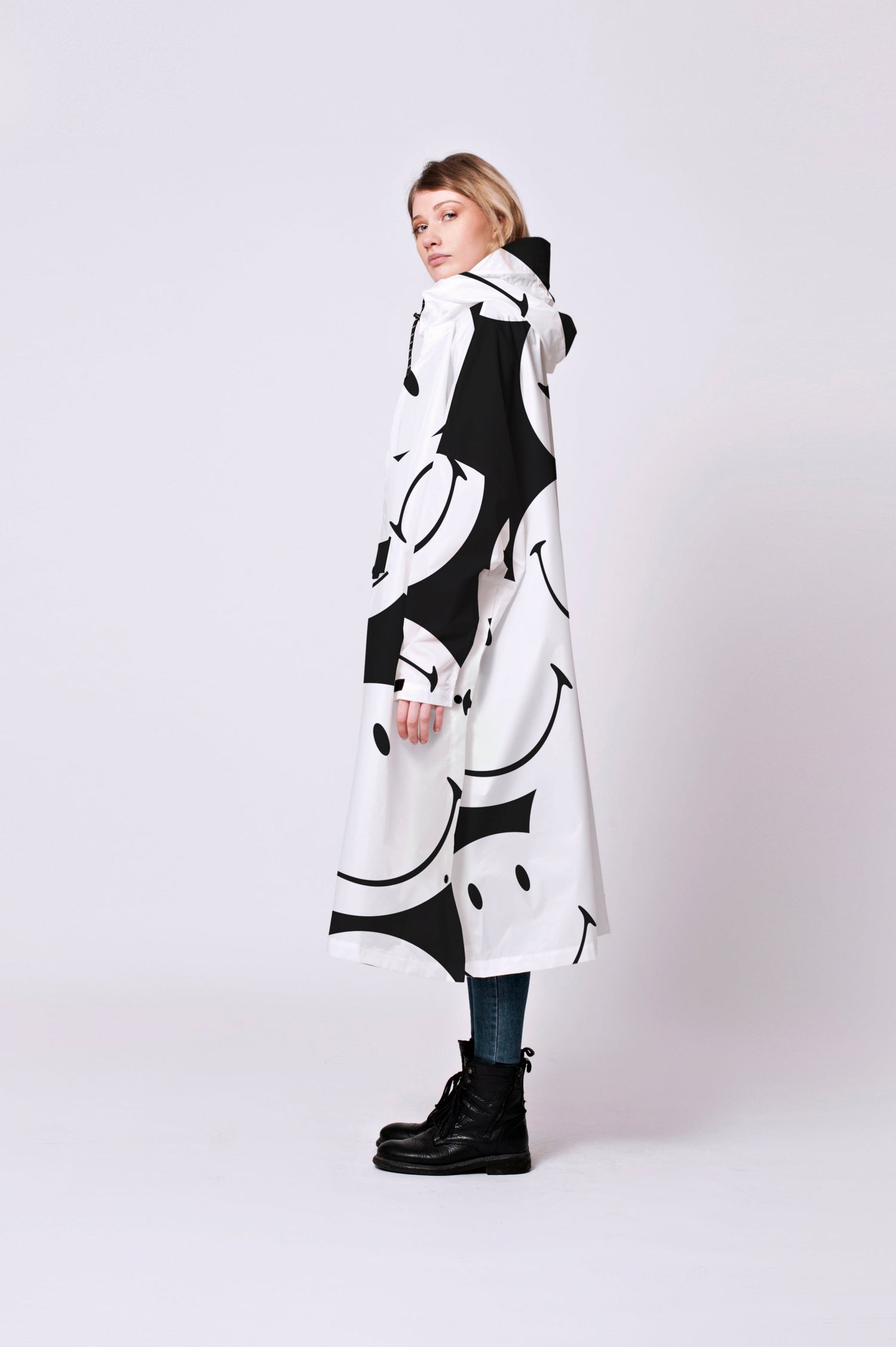 Panda Smiley® Originals 레인판초는 미소 짓는 데 색이 필요 없다는 것을 증명합니다.